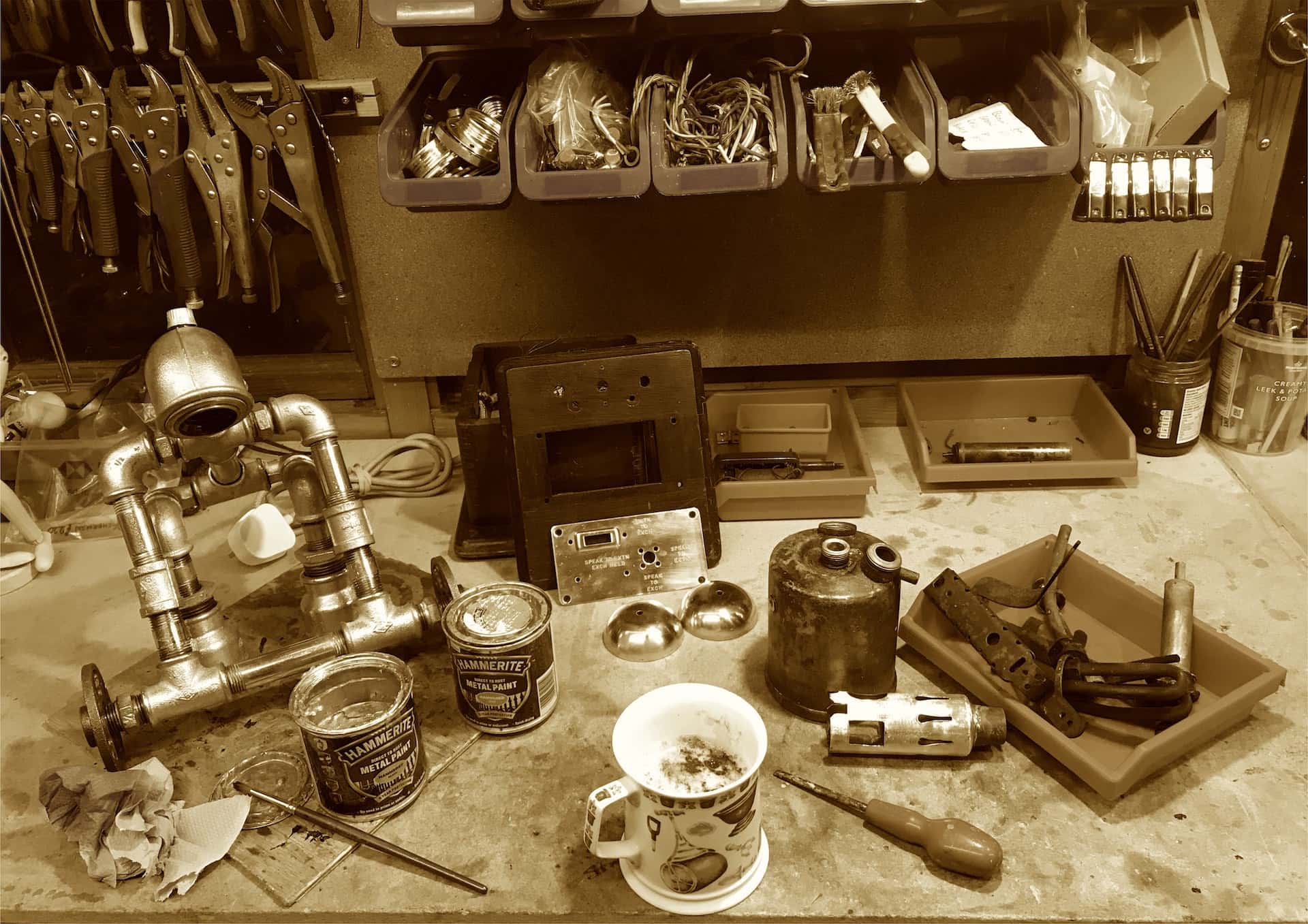 Then, one day, by chance, I discovered that the iron, galvanised pipe fittings of my youth were still available and, with the trend for industrial and steampunk-style décor, I embarked on designing & making my own range of ‘Pipeman’ character pipe lamps. These started as generic ‘people’ but soon developed into representations of celebrities—sports people, musicians etc. I then began to take commissions for bespoke lamps for special occasions, which are often interesting, challenging and great fun. It was at this point that Wacky Lamps was really born!